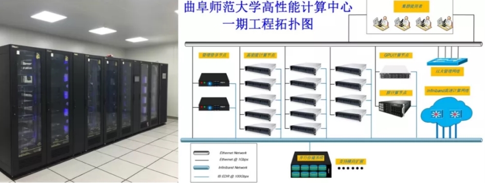 高性能计算中心采用CPU+GPU的异构集群架构, 首期工程总计1656个CPU计算核心, CPU计算能力为136TFlops, GPU节点计算能力9.4TFlops。单节点采用gold 6132CPU搭载192GB内存,单节点计算速度高于现在国内大部分超算平台。