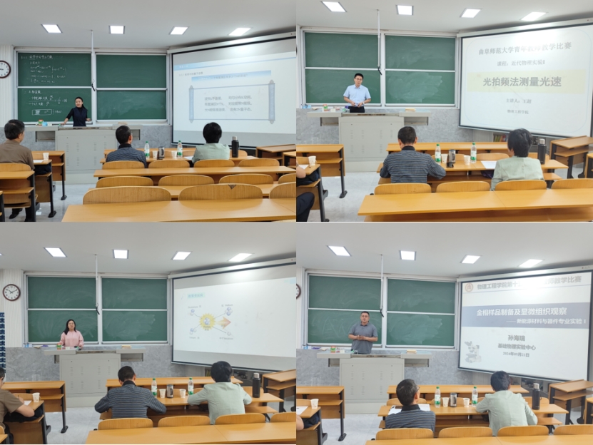 预赛以教研室为单位分为物理组、光电组和材料组,各教研室教师现场观摩比赛。参赛教师比赛准备充分,内容紧扣教学目标,期间参赛教师互相观摩学习,研讨教学方法,受益良多。最终通过预赛推选出10位青年教师参加学院复赛。