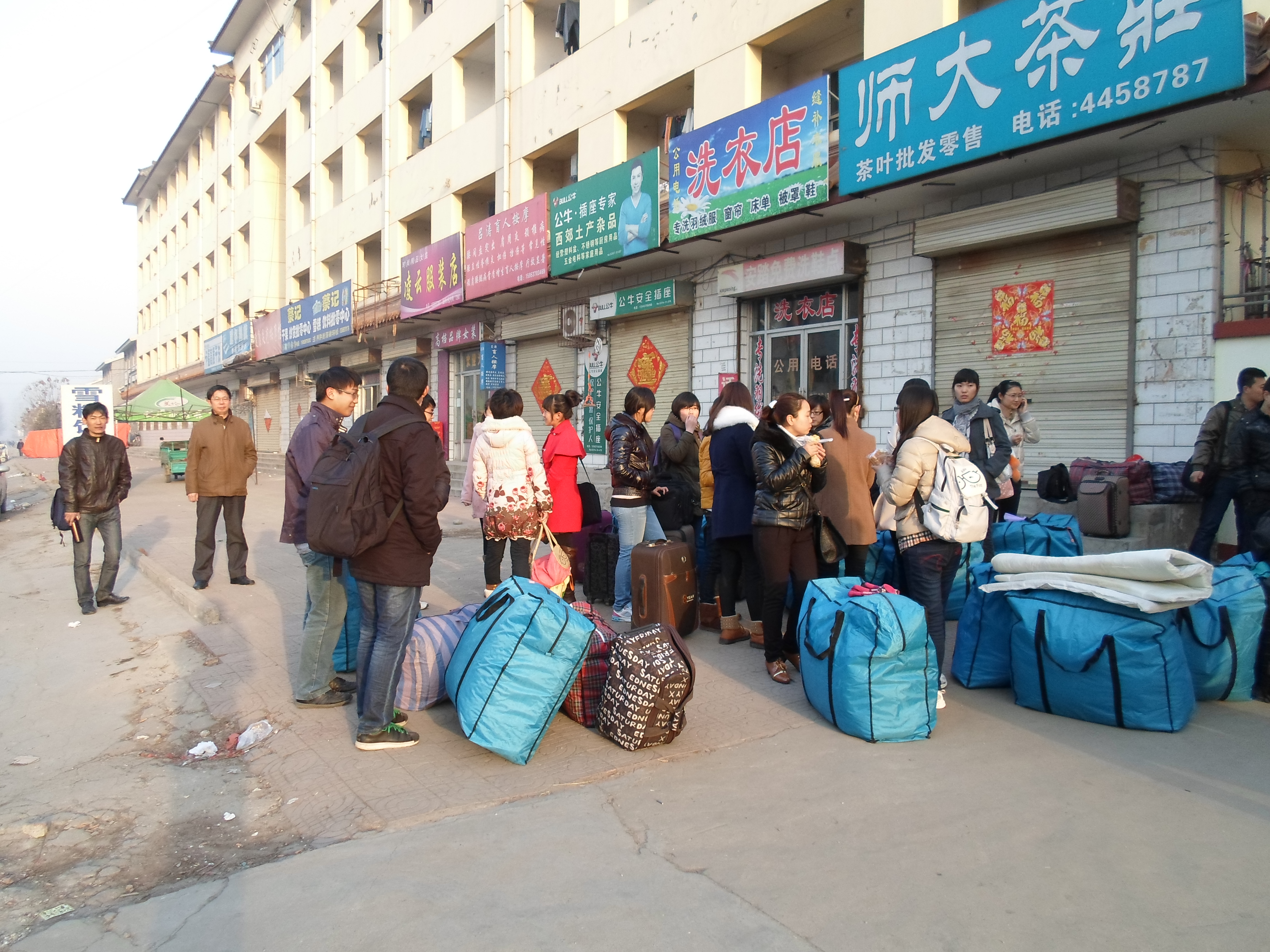 北公寓前集合,准备外出实习,学院副院长孔祥和教授及2009级辅导员李爱国老师为同学们送行。