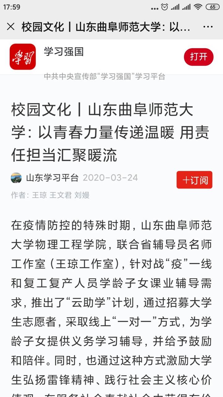 “云助学”活动的开展,同时受到了媒体的关注,学习强国、中国青年网、大众网、齐鲁晚报等媒体平台纷纷报道了活动开展情况。
