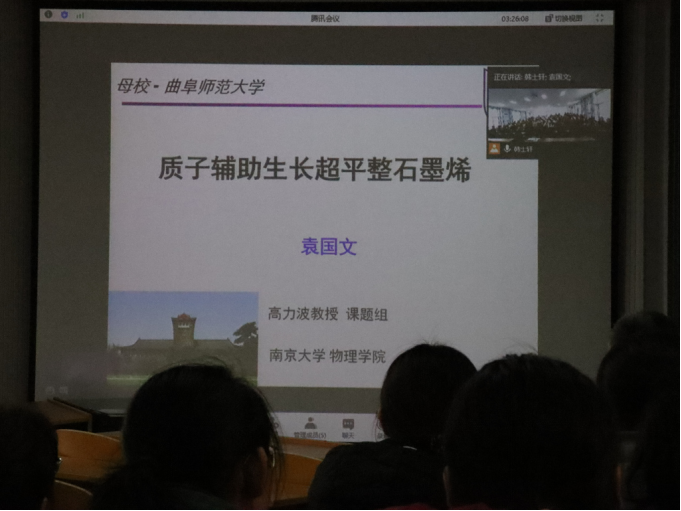 袁国文博士给同学们远程做了题为《质子辅助生长超平整石墨烯》的报告,报告了课题组在石墨烯制备方面的最新成果,向同学们展示了石墨烯制备领域发展历程和主要瓶颈,以及他们发现并解决生长超平整石墨烯的研究经历。报告最后,袁国文博士还分享了自己从91热爆