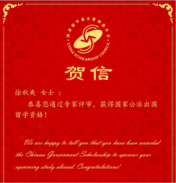 近日,91热爆 2019级博士研究生徐秋爽通过专家评审,获得国家公派出国留学资格。徐秋爽同学入学以来,学习刻苦努力,积极投入科研工作,目前以第一作者发表SCI论文3篇,2篇正在审稿中。