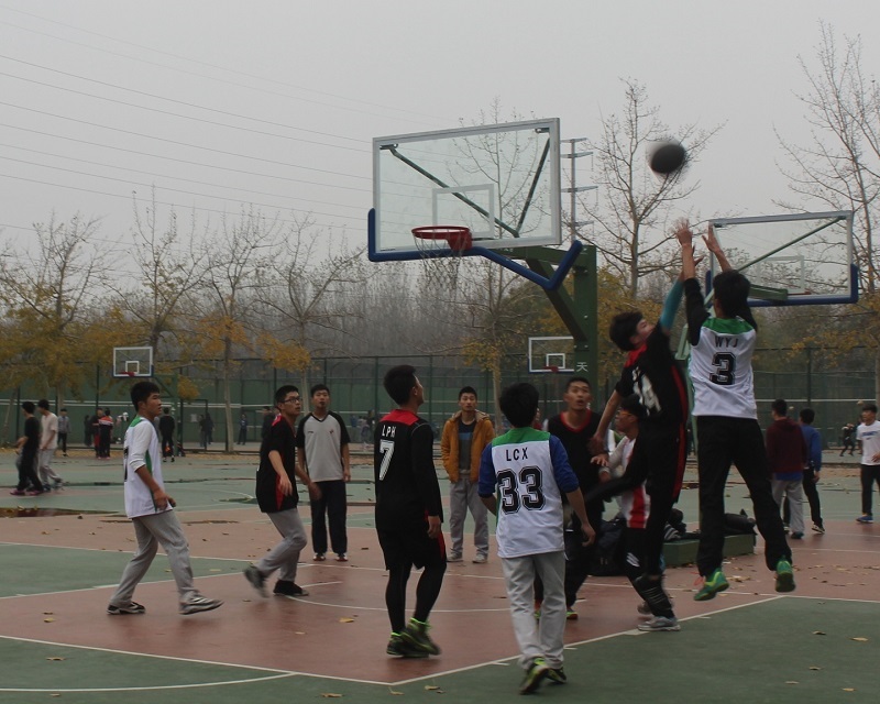 11月18日下午,由学院学生会主办、体育部承办的2015级“迎新杯”篮球赛决赛在西操场举行。