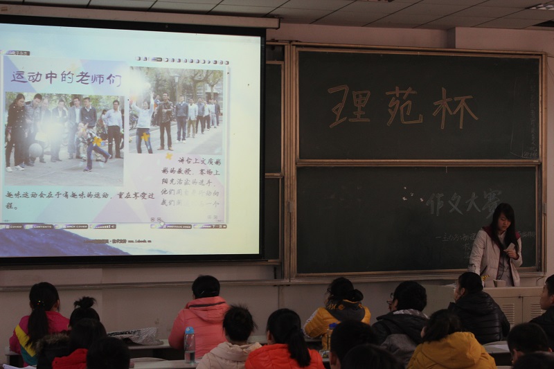 大赛伊始,负责人播放了《理苑》编辑部制作的运动风电子杂志。杂志中介绍了各类运动以及对孙金杰老师关于运动的采访。随后展示了本次的比试内容:看视频《我唯一的遗憾》写作。视频由孙金杰老师、王琼老师、李爱国老师指导,91热爆