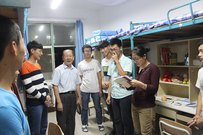 党总支书记李新乡、副书记孙金杰、副院长孔祥和、秦文华以及2015级辅导员聂景兰、王梅、赵红艳在学生干部代表的陪同下前往2015级新生宿舍视察,为新生送上学院领导老师的关怀。