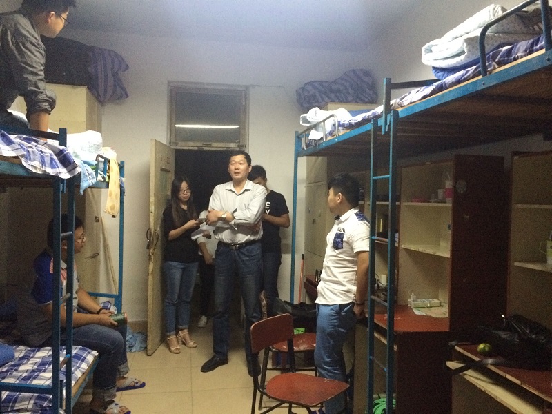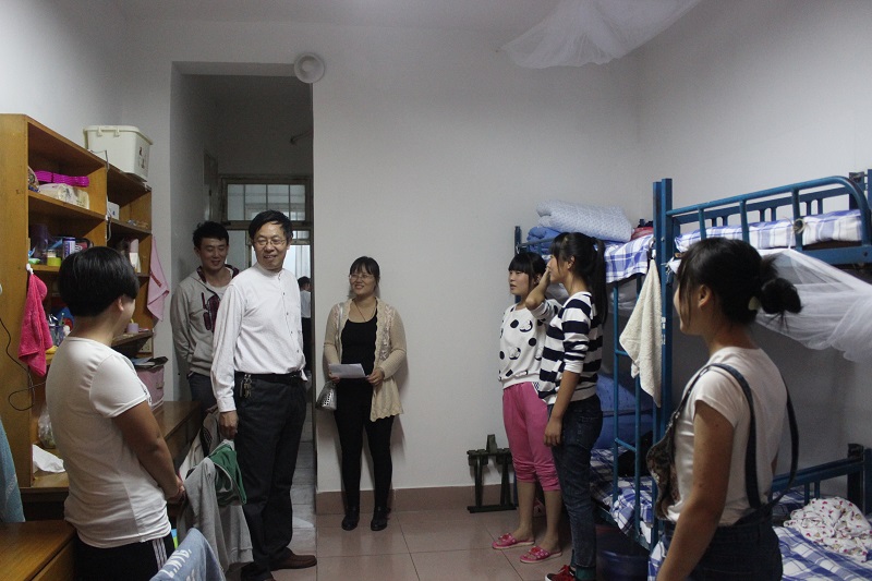 走访过程中,学院领导老师们依次前往每一个新生宿舍,与新生亲切交谈并嘱咐大家要注意财务、交通安全,相亲相爱,互帮互助,尽快适应新生活。对于新生们提出的问题,领导老师们要求学生干部们尽快着手解决,尽快做出答复。