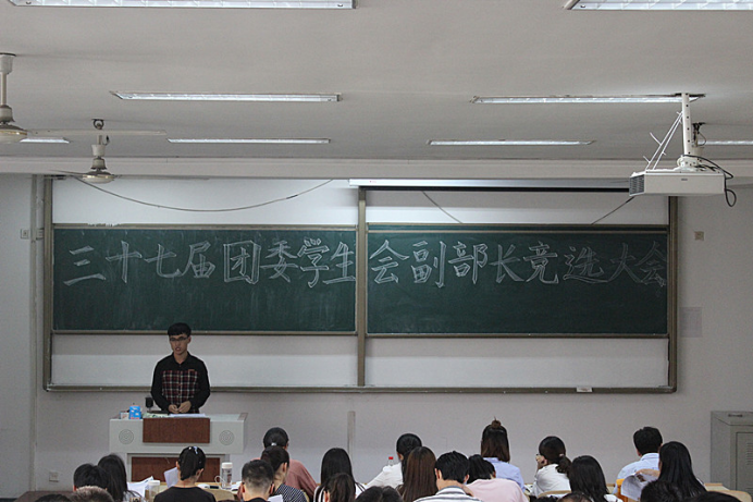第三十七届团委、学生会副部长竞选大会在实验中心A202举行,主席团成员及各部门部长担任评委,各部门参选干事参加了竞选活动。