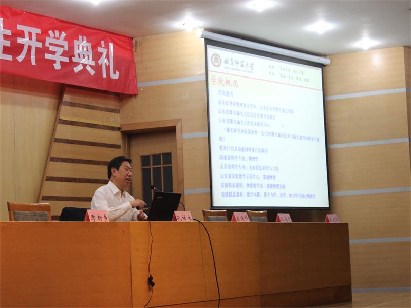 2015级新生开学典礼在孔子会堂顺利举行。党总支书记李新乡,院长孔祥木,党总支副书记孙金杰,副院长宋连科、孔祥和、王海龙、秦文华,辅导员李爱国、王梅、赵红艳、聂景兰出席此次典礼,2015级全体同学、学院教师代表和部分高年级学生代表参加了开学典礼。