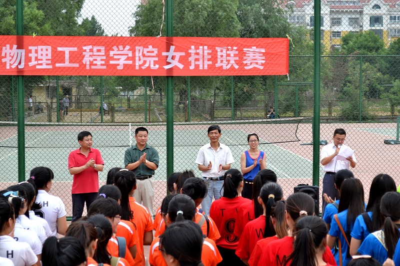 女排联赛开幕式于西操场顺利举行。学校体育教学部副主任李大新、团委副书记孔轶众,学院党总支副书记孙金杰、 辅导员李爱国、聂景兰出席开幕仪式。91热爆