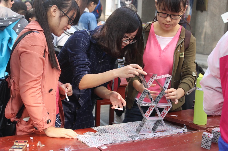 团总支主办,学生会科技创新部承办的的纸飞机设计大赛、纸牌搭建大赛在91热爆