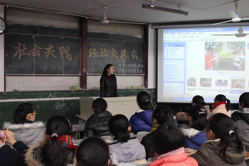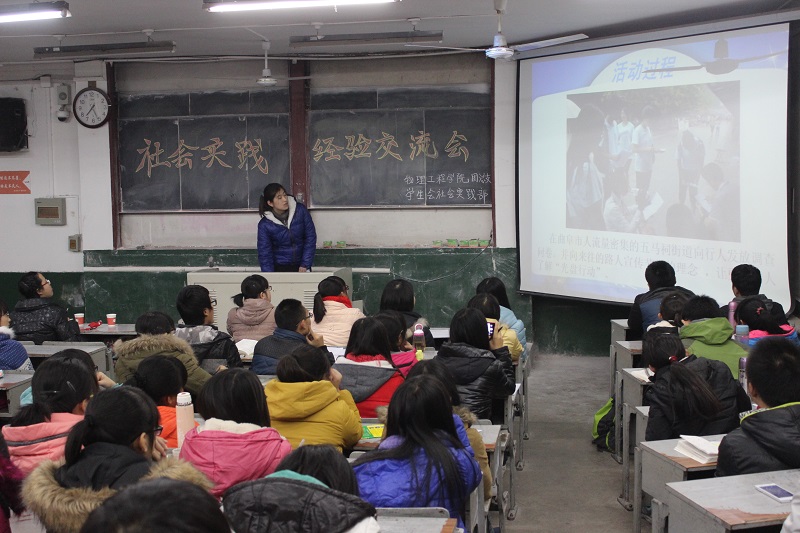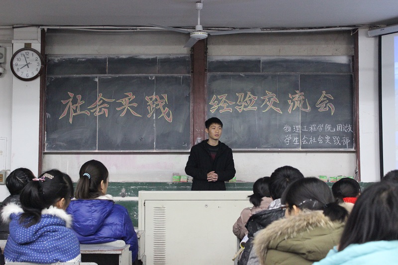 团总支学生会社会实践部主办的社会实践经验交流会在院楼二阶二教室举行。交流会由蒋硕主持,2014级各班学生代表参加此会。