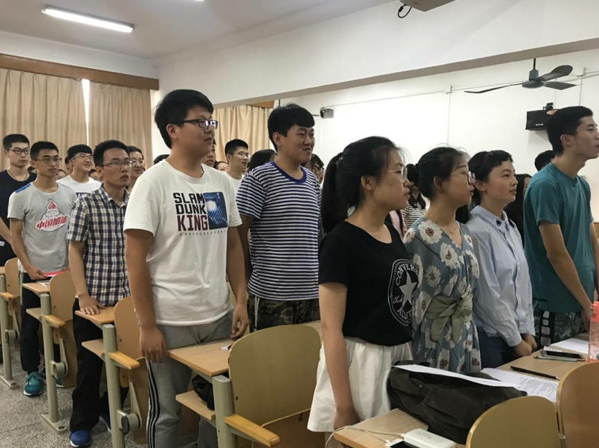活动伊始,全体与会党员合唱《国际歌》。随后,按照时间顺序,同学们唱响不同历史时期的红歌。从表现共产党不畏艰险、百折不挠的《人民军队忠于党》,到歌调轻快的《南泥湾》;从充满希望的《东方红》,到歌颂社会主义建设欣欣向荣的《社会主义好》;从体现新中国朝气蓬勃的《团结就是力量》,到赞颂共产党带领人民走向富强的《走进新时代》。一首首歌曲,唱出了大家对党和国家的深厚情感。最后,孙书记鼓励大家以此次活动为契机,进一步增强党员意识和党性意识,永葆共产党员政治本色。