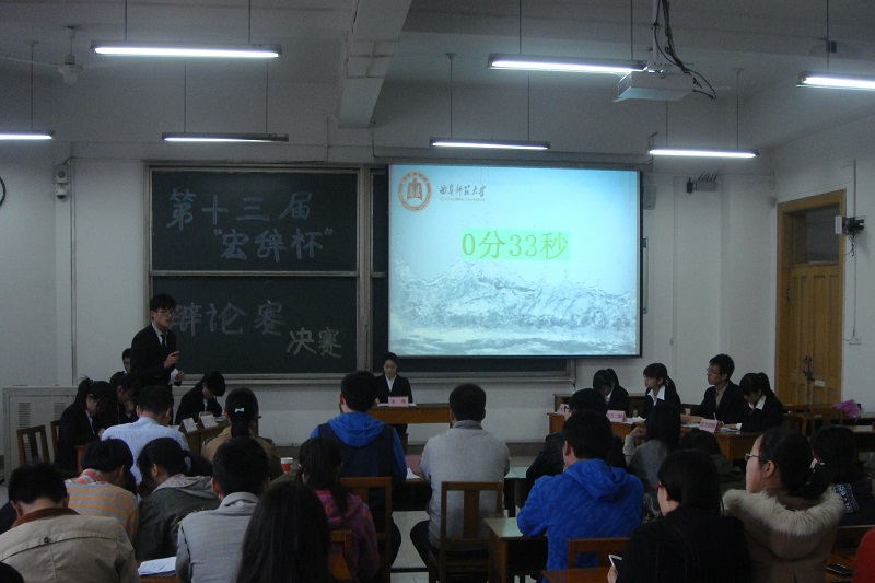团总支主办、学生会学习部承办的第十三届“宏辞杯”辩论赛决赛于4月12日下午在综合楼205教室进行。此次辩论赛决赛评委由校学生会及学院团总支学生会学生干部和历届“宏辞杯”辩论赛最佳辩手担任。