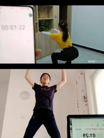 此次活动以“宅家不宅身,运动战疫情”为主题,共分为三期,第一期:“云”运动,“跳”战疫——跳绳活动;第二期:“击”倒病毒,“起”出健康——男生俯卧撑击掌、女生仰卧起坐活动以及第三期:开合跳和标准深蹲活动。每期活动持续约一周时间并分为男女组,活动面向学院全体学生。活动开展伊始,就受到了同学们的热切关注,同学们在家人的协助下,利用空闲时间体育锻炼,录制视频,展现出蓬勃向上的朝气与青春活力。