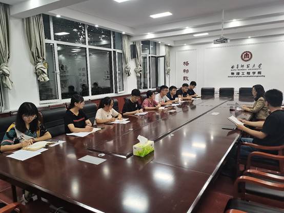 9月17日下午,在物理楼225会议室召开2020级班级助理会议。学院团委书记王琼,新生辅导员王衡及10位班级助理参加会议。