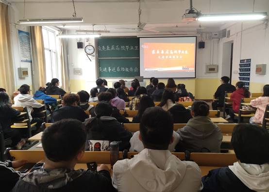 组织师生在物理楼210教室共同观看“最美基层高校毕业生”先进事迹首场报告会。学院团委书记王琼,辅导员颜冲、邱金芝、孔瑞、王衡与学院学生代表共同参加此次活动。