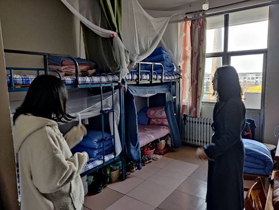 为落实学校新学期学团工作会议中关于加强学生宿舍安全排查的相关要求,深入了解学生学习生活状态,3月9日下午,团委书记王琼,辅导员李爱国、颜冲、孔瑞、邱金芝、王衡分别前往西公寓和北公寓进行走访。