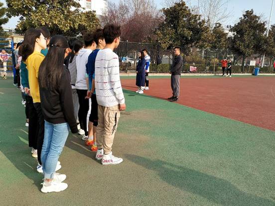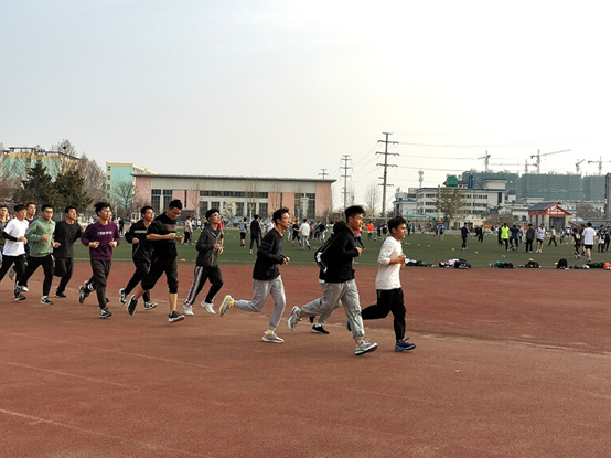 于学校西操场召开春训动员大会。辅导员邱金芝、王衡,学院学生会体育部成员和全体春训运动员参加此次活动。