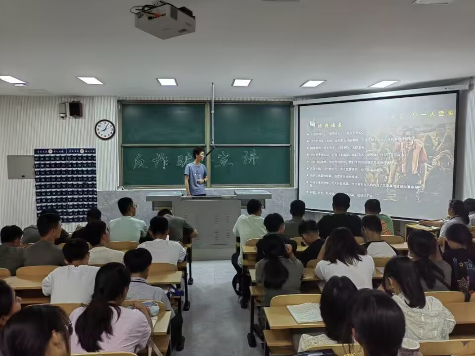 学院还组织开展反诈骗宣讲活动,同学们结合当下的热播电影《孤注一掷》展开讨论,发表有关反诈骗的经历与见解。宣讲同学针对网络刷单、“杀猪盘”、网络购物、熟人冒充等常见诈骗手段精心制作短视频,使同学们在感受短视频趣味性的同时,对诈骗的形式和常用手段有了进一步的了解。
