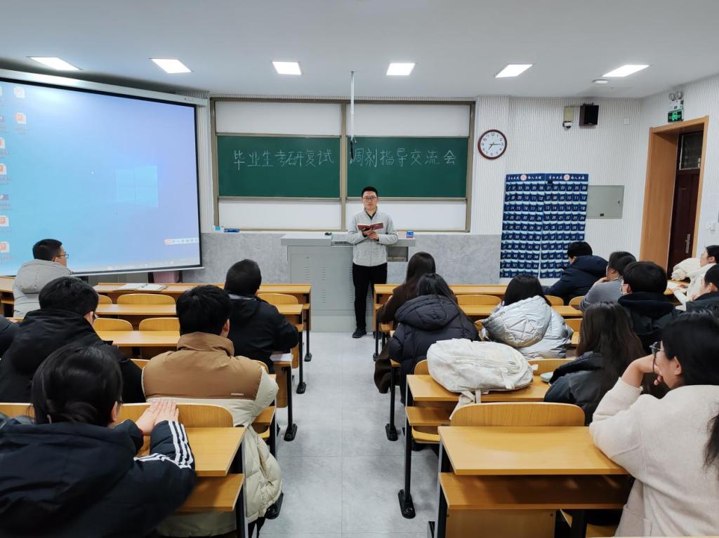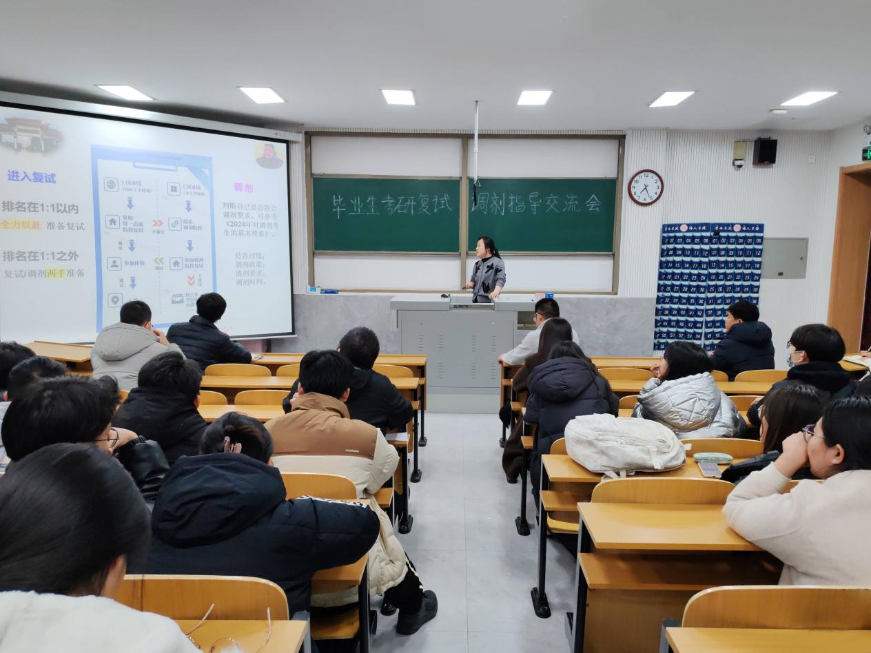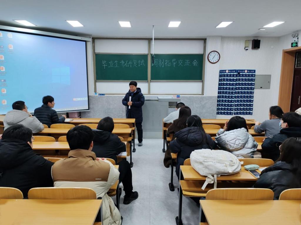 刘广强针对不同报考院校的实际情况,讲解联系导师的具体操作及复试应对策略。韩士轩对面试考察形式,调剂信息的获取和选择进行了详细说明。徐娟对专业成绩与国家线进行解读,科学指导毕业生复试规划,拓宽选择思路。老师们采取面对面的方式,解答学生疑惑,给出科学的指导和建议。