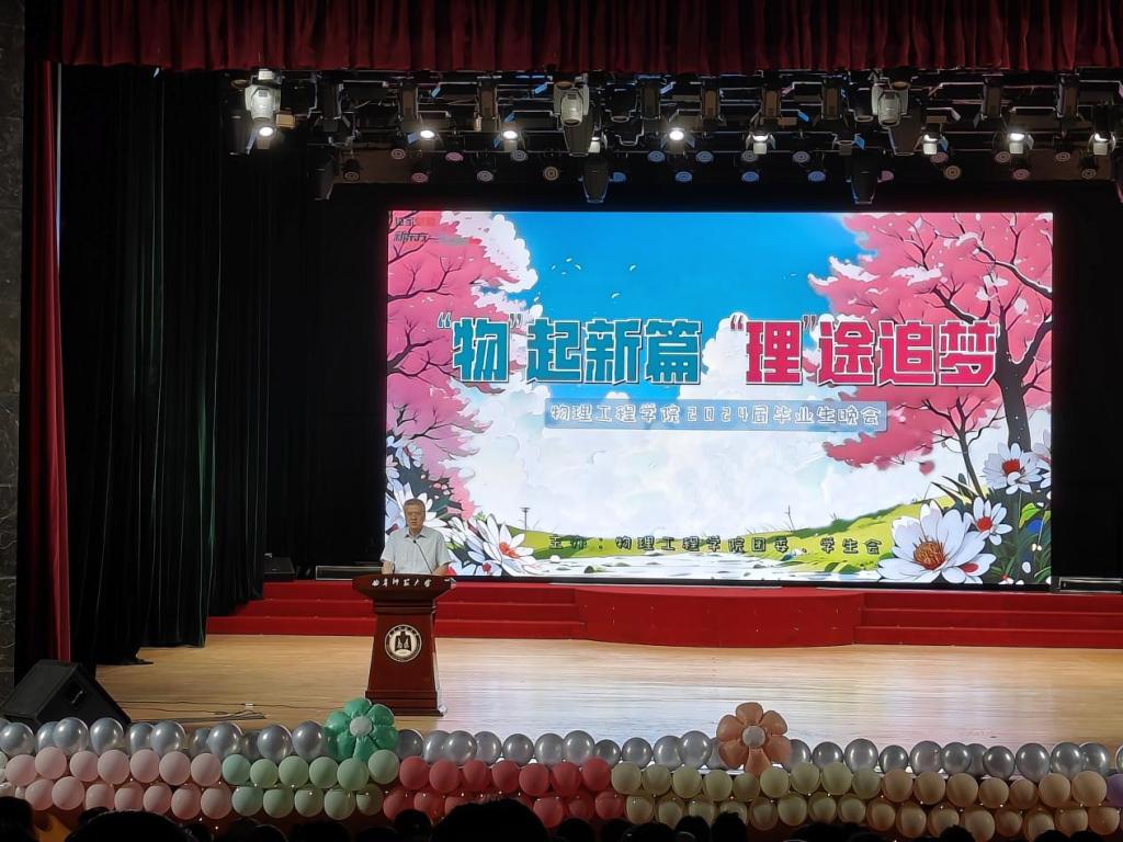 讯(通讯员:李依诺 王雪晴)为丰富学生校园文化生活,表达对毕业生的美好祝愿,5月26日晚,学院于大学生活动中心礼堂举办 “物起新篇,理途追梦”2024届毕业生晚会。学院院长满忠晓、党委副书记王琼、副院长刘广强、全体辅导员出席晚会。