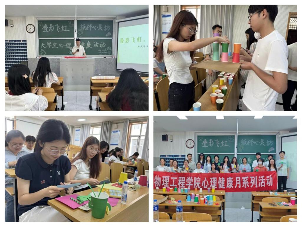讯(通讯员:黄钰钦 刘怡萱 摄影:周鑫 全得源)为助力学生释放心理压力,营造健康和谐的校园文化氛围,5月18日下午,学院于物理楼二阶二举办 "叠影飞虹,纸杯心灵坊" 主题活动。