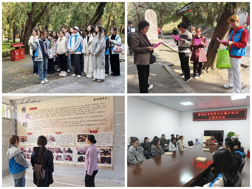 10月18日下午,学院组织开展“礼敬圣贤·知行合一”优秀传统文化传承系列实践活动。活动中,国学导师领读《四书》,体悟古典语言韵律之美;志愿者深入孔林,追寻儒家文化的深远内涵;分发宣传单,呼吁广大群众关注文化遗产保护;走进曲阜春耕园学校,聆听传统礼仪与“君子六艺”的讲解,领悟传统文化教育的深远意义。