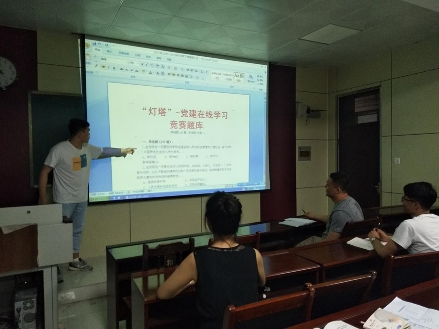 研究生党支部组织全体党员同志在物理楼313室进行“灯塔—党建在线”竞赛题库学习的主题党日活动。李永超同志作为此次学习活动的主讲人,带领本支部党员同志解读竞赛题库中的重点内容及把握的方法,党员同志们秉承认真学习、提高自我的态度进行了深入地参与。