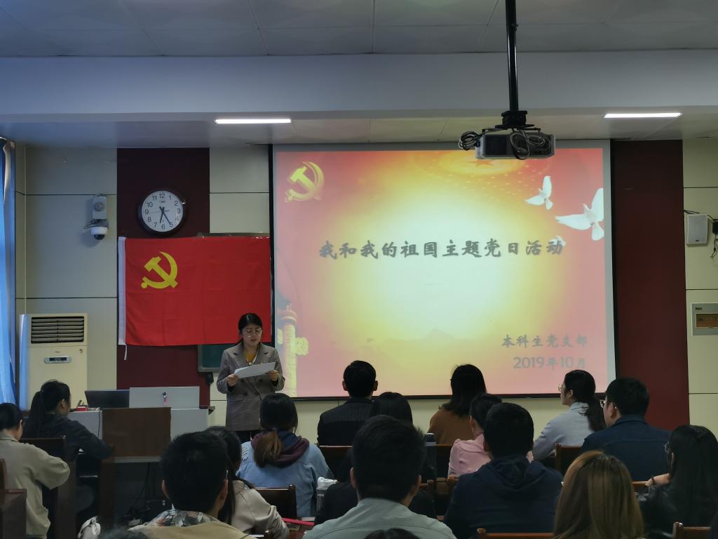 本科生党支部于物理楼313教室开展“我和我的祖国”主题党日活动。本科生党支部书记王琼,辅导员李爱国、颜冲、李靖靖出席会议,本科生党支部全体党员及入党积极分子参加。本次活动由李靖靖同志主持。