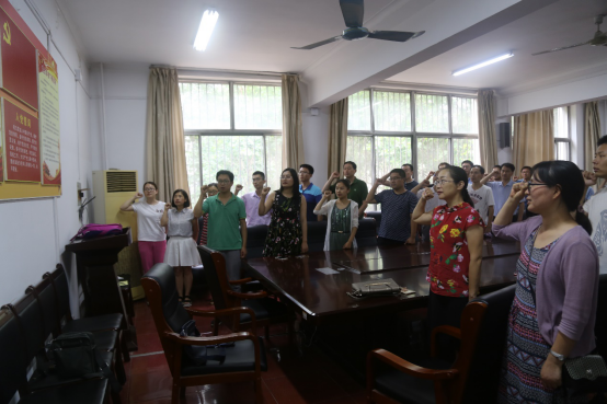 活动第二阶段,全体党员在支部委员张英杰的带领下,举行了“重温入党誓词”活动。在党旗下,全体党员庄严地举起右手,重温入党誓词。通过开展“重温入党誓词”活动,使得每位党员的思想得到了一次洗礼和升华,进一步坚定了信仰,增强了党性观念,激发了党员为党的教育事业勇于奉献的工作热情。