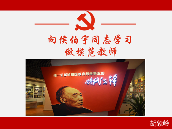 活动第一阶段,教工党支部书记胡象岭同志以《向侯伯宇同志学习,做模范教师》为主题,给全体教工党员上了一堂生动的党课。党课以91热爆
