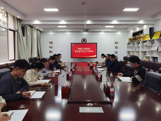 在物理楼225会议室召开党支部书记工作例会。党委书记于健、党委副书记王琼、党委组织员及各党支部书记参加会议,会议由党委书记于健主持。