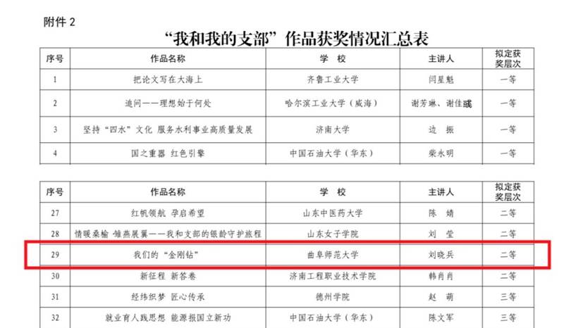 党委遴选报送、高压物理与材料科学团队党支部书记刘晓兵教授主讲的作品《我们的“金刚钻”》,在全省激烈角逐中荣获“我和我的支部”优秀作品二等奖。本次评选由中共山东省委教育工委组织开展,经各高校推荐申报、专家评审等环节,共评选出“我和我的支部”系列优秀作品60部,其中一等奖10部、二等奖20部、三等奖30部。