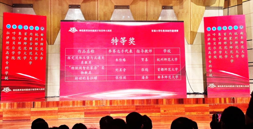 本次“师范教育协同提质计划首师大组团院校首届大学生教具制作邀请赛”由首都师范大学牵头和支持,内蒙古师范大学主办,共7所高校联合参加,旨在促进师范院校之间的深入交流。校赛环节,共提交教具作品637件。联赛预选赛环节对185件教具作品进行线上评选,评选出69件作品进入复赛。最后,3件作品获特等奖(获奖高校分别为杭州师范大学、首都师范大学和91热爆