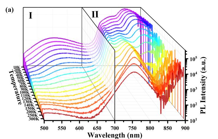图1 Bi掺杂甲胺铅碘晶体照片(上)及施主光谱指纹特征演化光谱(下,10~300 K)