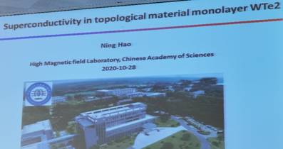 学术交流,郝宁研究员做了题为 “Superconductivity in topological material monolayer WTe2”的学术报告。本报告主要讲述了拓扑材料WTe2体系中超导电性的机制、特征以及与实验观测的联系。通过分析超导配对的对称性,并结合实验上观测到的异常的临界场行为,预测该体系的非常规特性。会后郝宁研究员与付吉永教授、闫循旺教授、路洪艳教授等老师进行了讨论,为进一步合作达成意向。