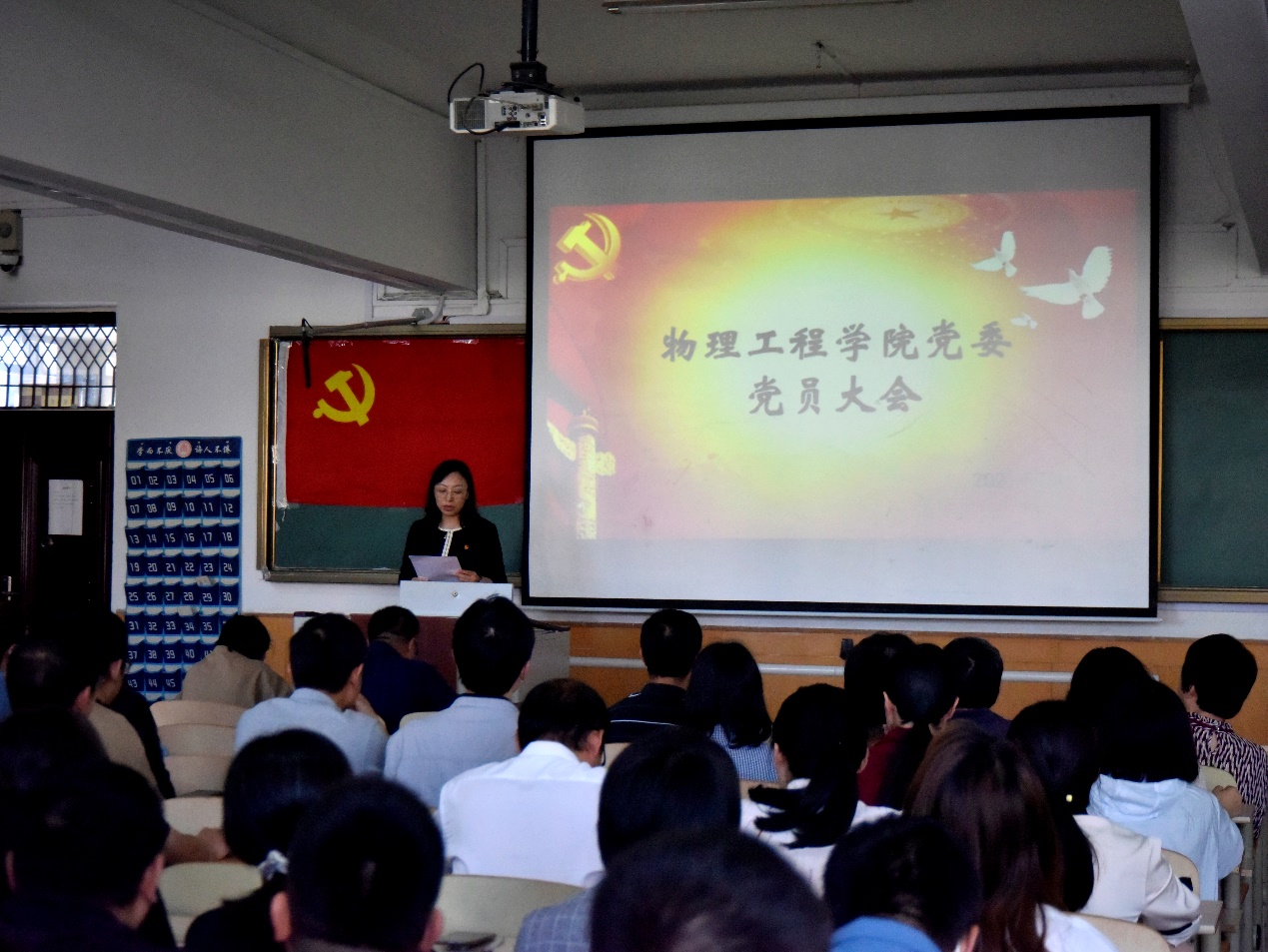 9月29日下午,学院党委于物理楼402教室召开党员大会,进行党委委员增补选举工作。学院全体师生党员参加会议,大会由党委副书记王琼主持。