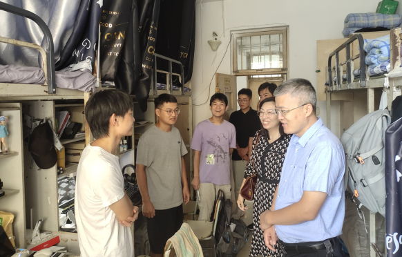 走访过程中,各位老师与同学们亲切交谈,详细了解大家假期生活,以及返校后的状态,叮嘱同学们认真落实疫情防控要求,并鼓励大家以饱满的热情投入到新学期的学习和生活中。走访中,老师们提醒同学们要进一步增强安全防范意识,用心营造文明洁净的宿舍环境和良好的学习、生活氛围。随后,辅导员老师对各年级宿舍进行了走访。