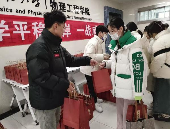 院长满忠晓、副院长张英杰、团委副书记颜冲、毕业生辅导员李靖靖、张杰、辅导员邱金芝、王铭晨,为2024届考研学生发放“加油包”并送上温暖祝福。