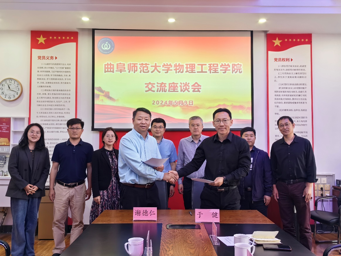 为进一步加强校际合作,学习先进工作经验,2024年5月9日,学院党委书记于健、院长满忠晓、副院长刘广强、基础物理实验中心主任孟祥省、党委组织员兼本科生第二党支部书记孔瑞一行5人前往山东师范大学物理与电子科学学院调研学习,并进行了座谈交流。