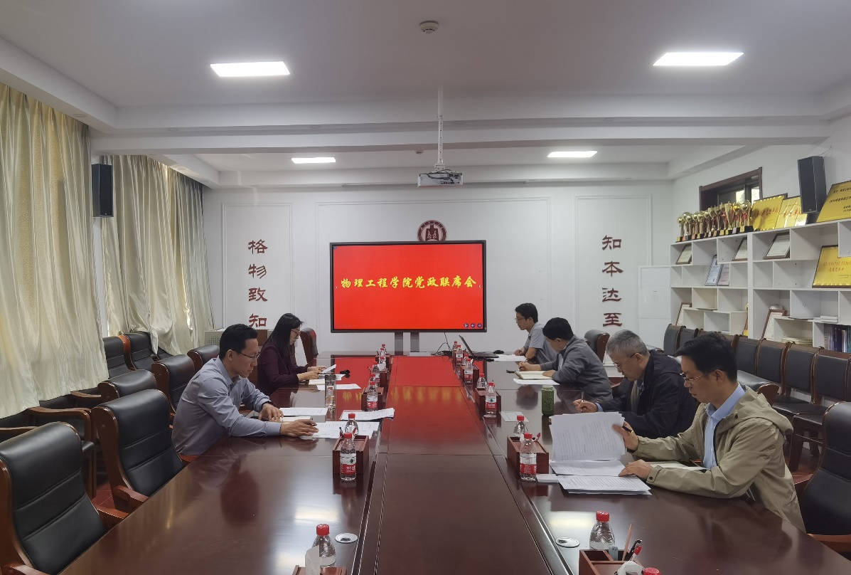 在物理楼225会议室召开党政联席会议,学院领导班子全体成员参加会议。