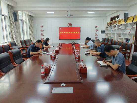 在物理楼225会议室召开党政联席会议,学院领导班子全体成员参加了会议。